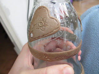 Din pacate, neavand termometru cu care sa verific temperatura am cam ars lutul, in loc sa ramana la culoarea initiala acesta devenind cafeniu. Totusi arderea lutului nu a fost un impediment deoarece ulterior am vopsit lutul cu acrilice (dupa ce s-a racit sticla). Daca folositi insa un termometru de cuptor si un cronometru nu veti pati sa se arda lutul.